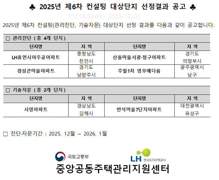 ★2025년 제6차 컨설팅 대상단지 선정결과 공고★