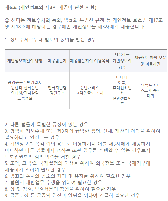정보주체 동의/공동주택관리 고객상담 |