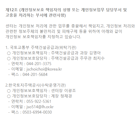 중앙공동주택관리지원센터 운영 및 개인정보 처리 업무 |